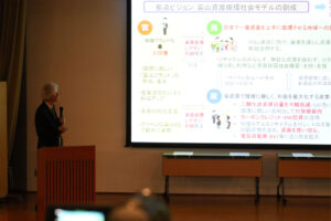 令和4年12月12日(月) 富山大学高岡キャンパスにて富山資源循環モデル創成にむけた産学官共創拠点キックオフシンポジウムが開催され、現地とオンライン配信併せて約100名の方にご参加いただきました。