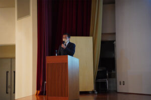 齋藤学長より基調講演、柴柳ARCセンター長より本事業についての説明、東京工業大学の熊井名誉教授より「カーボンニュートラル社会に向けたアルミニウムの役割と可能性」という講演を賜りました。